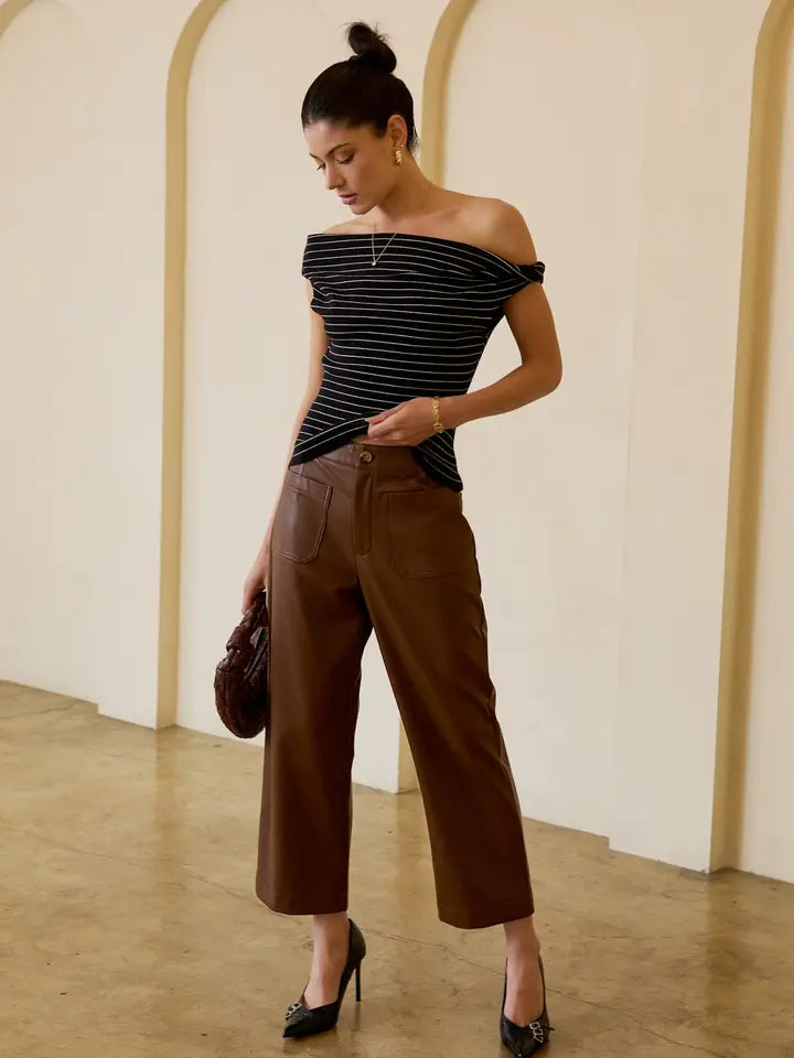 A faux leather pant is just what you need this fall! This is a designer look for less with a high-end feel you will love carrying you through winter!
