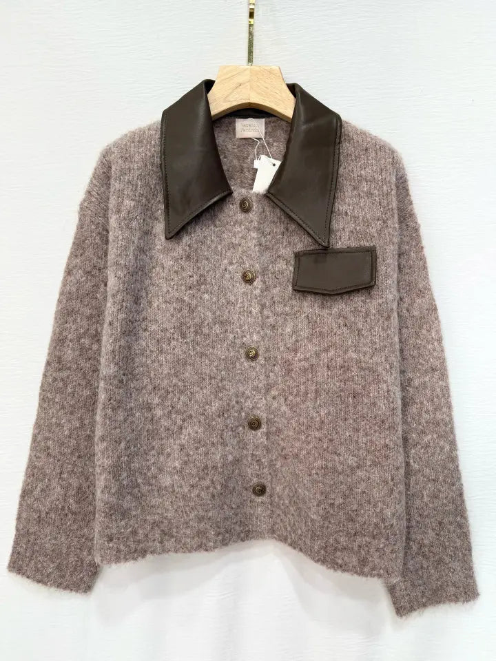 Pre-Order Leather Collar Ultra Soft Cardigan
