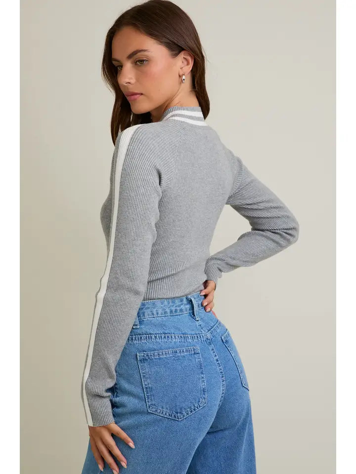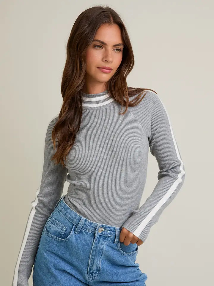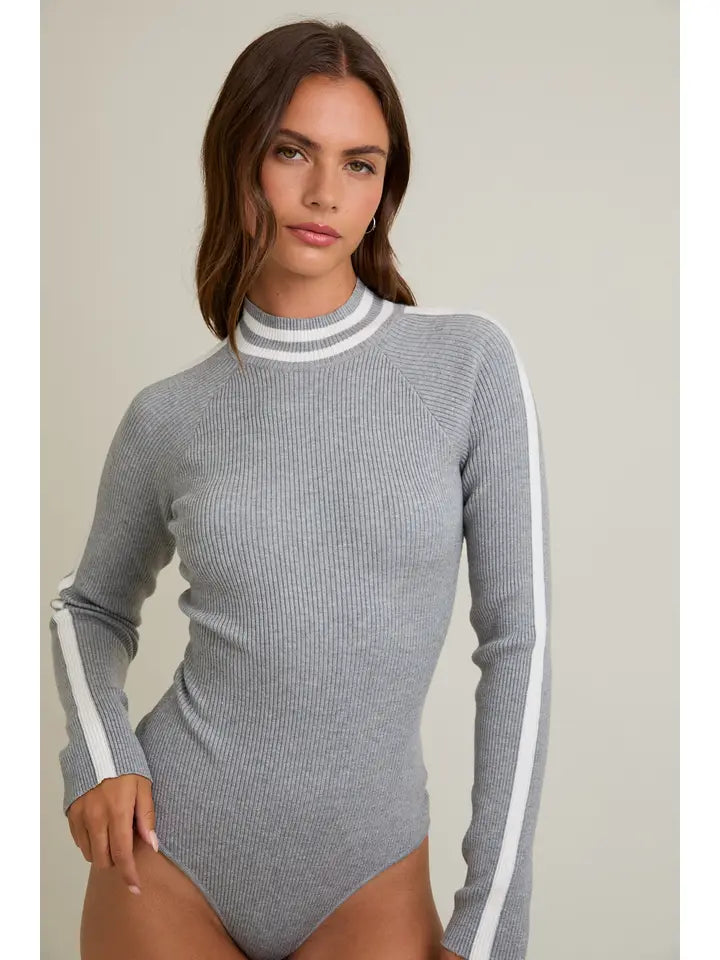 This timeless varsity-striped bodysuit combines simplicity with contemporary style for an effortlessly chic look.